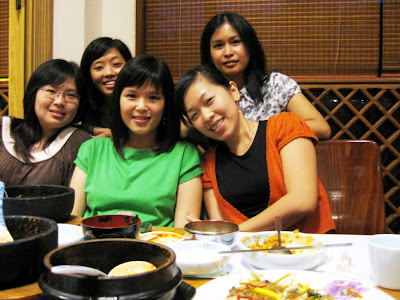 Kemarin santi undang kita makan di Seoul Taman Sari....Nice dinner..coz she invited all the close friends..and we all have a good laughs...Kita bahasin masalah dari having children, getting pregnant...the economic crisis..and masalah sunset policy..(so readers uda pada punya NPWP belum???)